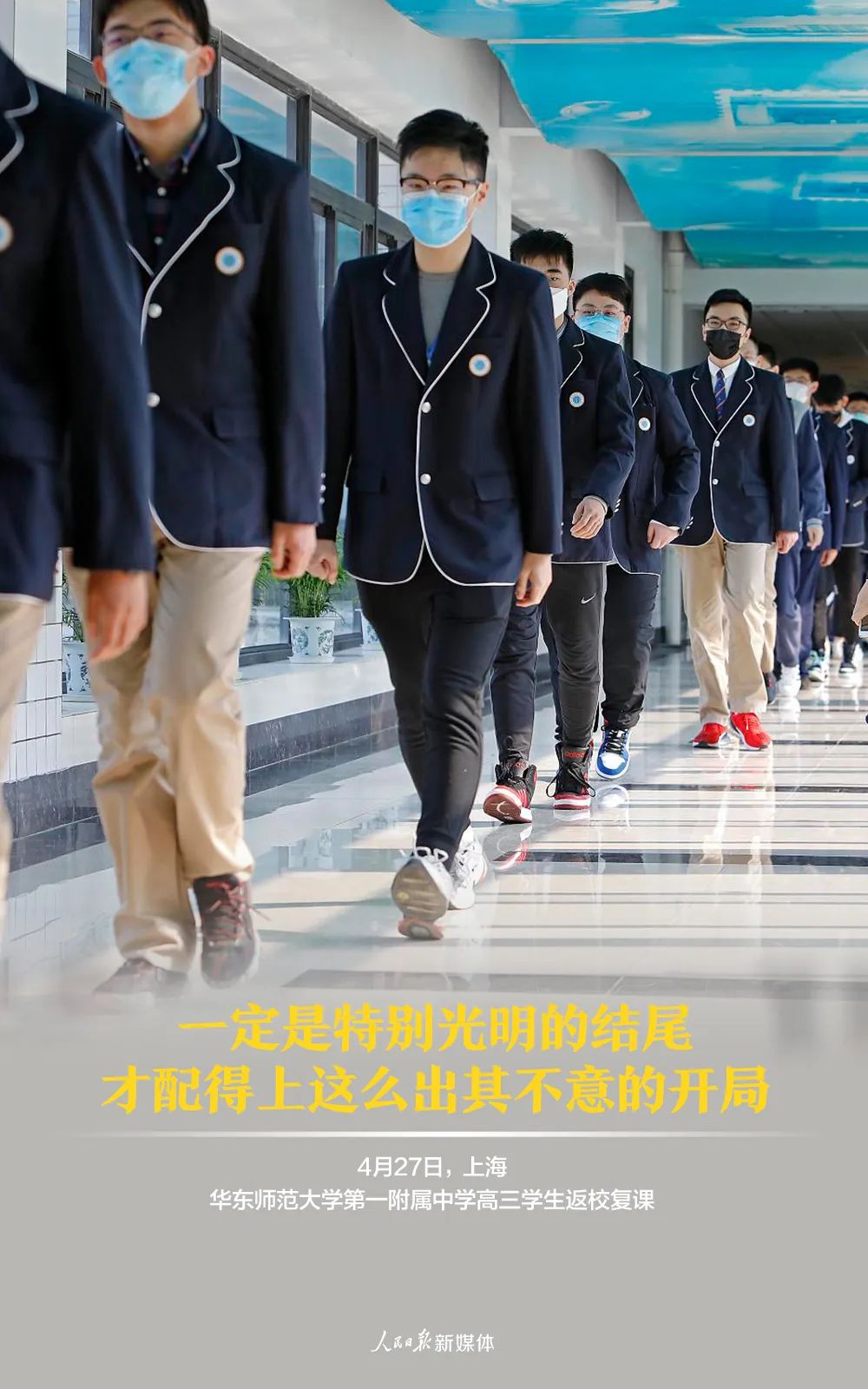 随着湖北省宣布高中毕业年级学生5月6日统一开学,目前,全国已有31省份确定了开学时间。4月27日,北京、上海、广州等多地高三初三学生复课。同学们热情洋溢地迎来了期待已久的新学期……